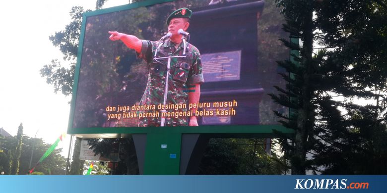 MALANG, KOMPAS.com - Sejumlah videotron di Kota Malang menayangkan profil mantan Panglima TNI Jenderal (Purn) Gatot Normantyo, Selasa (3/4/2018).
