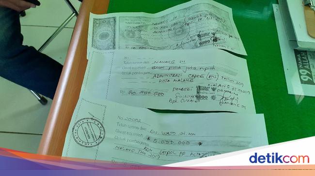 "Saya kemudian diberi formulir untuk masuk honorer di Satpol PP Kota Malang. Pak Nanang minta biaya administrasi tahap pertama Rp 5 juta dan selanjutnya Rp 10 juta. Kami bayar dan ada kuitansinya," ujar KS ditemui di kantor Kecamatan Blimbing Jalan Raden Intan, Kota Malang, Selasa (13/8/2019).